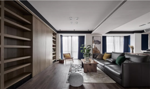 樸質的安全板,“印刻”著自然的紋理,顯出歲月靜好的趕緊。鋪陳于客廳一側的鐵格柵與木飾面,相互融合,毫無違和感。軟糯的布藝沙發,在時光中,默默流淌。