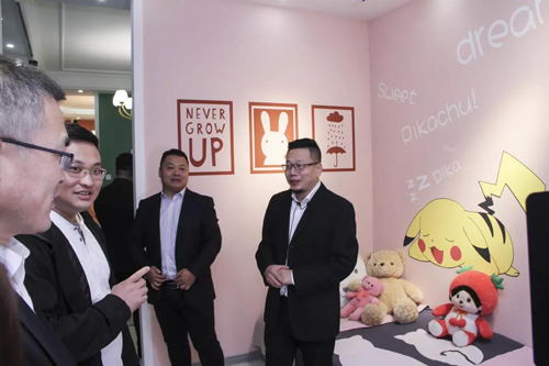 這樣就可以把和您家裝修風格類似的客廳或臥室的展板放在喜歡的顏色版上面,透明的墻面立刻被您喜歡的顏色填滿,一下就能感受到是否和您的家裝風格完美適配。到場嘉賓無不贊揚,這樣的設計太人性化了!