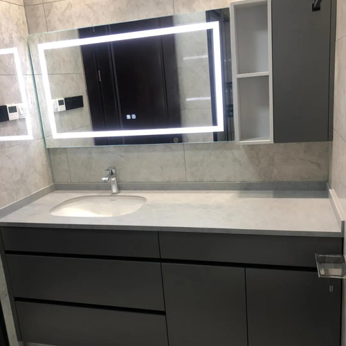 卡利亞不銹鋼浴室柜,除防水防潮防霉功能外,鏡面還擁有除霧、照明功能,內置式照明,照亮你的美,與鏡面渾然一體,保障鏡面清晰成像無陰影。觸摸屏操作,智能觸控,一觸即發,更加方便快捷。