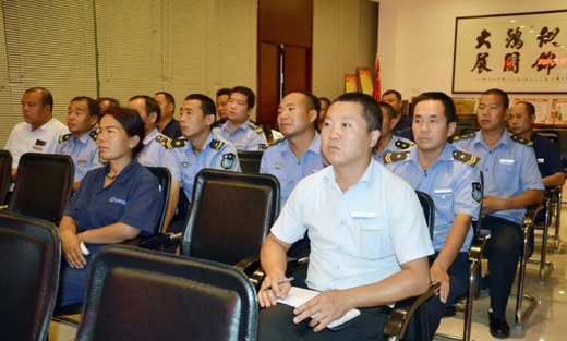 2018年7月3日下午,錦鵬建材不銹鋼五金玻璃批發基地物業部領導安排市場所有員工進行夏季消防安全及公共安全防控知識講座。市場保安、水電工、保潔等都參與其中。