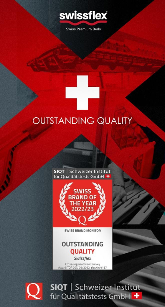 今年下半年,swissflex®瑞福睡被瑞⼠質(zhì)量檢測協(xié)會(下⽂簡稱“SIQT”)授予了杰出質(zhì)量⼤獎,肯定了其在睡眠領(lǐng)域的研發(fā)寢具枕頭、床墊、護脊⻣架等產(chǎn)品類別的優(yōu)異品質(zhì)表現(xiàn)。