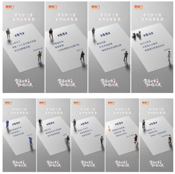 借由故事征集,喜臨門聚合了更多群體的共情、共感,顛覆了品牌單向輸出的營銷方式。面對用戶的評論與故事分享,喜臨門將其制成九宮格海報,將用戶“背后的力量”裂變傳遞,把人們心中的那股熱愛、初心、勇氣等無限傳遞,讓大眾真正看到了百樣人生“背后的力量”,以及喜臨門溫暖關懷下的情感共鳴。