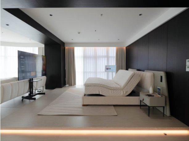 其次,這張床墊還能融入智能生態(tài),讓臥室里的設(shè)備都聽它的指令。