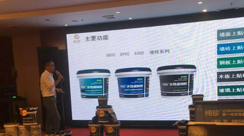 近日,廣西千百貝新材料科技有限公司在南寧維也納酒店舉行了純珍瓷磚膠知名品牌新一代水性瓷磚膠的產品介紹會。