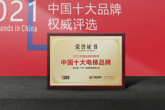 ·2021年12月,在由《中國品牌網》主辦、《財富中國》等權威網絡媒體協辦的2021“中國十大品牌”全國網絡評選活動中,富士通電梯集團在全國各大企業的激烈角逐中脫穎而出,榮獲“中國十大電梯品牌”稱號。