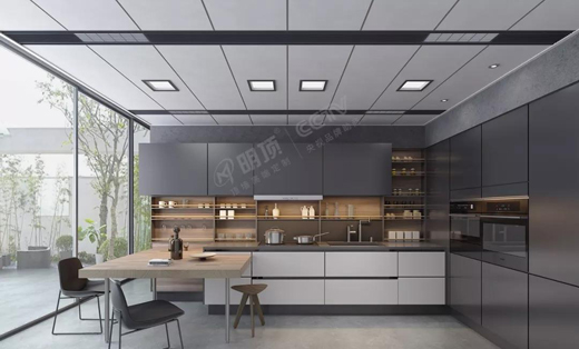 此次新品共450x450、450x900、450x1350三種規格,突破傳統小尺寸的視覺局限。從設計上來說,更能滿足年輕消費群體的品味與想法,大尺寸扣板給消費者提供了更多的選擇和組合的可能性,如果有特殊需求還可以進行定制化設計,充分滿足用戶的個性化安裝需求。從安裝效果上來說,大尺寸扣板拼接的次數減少,提高整體的平整度和精美度,避免因板材小,大量拼接,出現拼縫多不美觀的現象。從視覺上來說,大板給人一種延伸擴大的感覺,使空間更顯開闊。