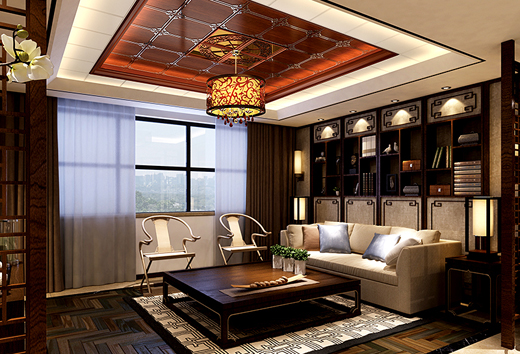 奇力知名集成吊頂品牌這款典型的暖色系中式吊頂設(shè)計(jì),濃郁的中國古典文化韻味,獨(dú)特的橫梁設(shè)計(jì)在視覺上為吊頂提升了立體感。