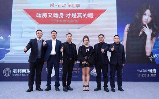 暖心天后何潔、陽光暖男林依輪,分別助陣活動成都站、合肥站,推薦冬季衛浴取暖新標準——大浴室洗澡用友邦吊頂干濕分區取暖系統,讓你冬天沐浴不再寒冷。