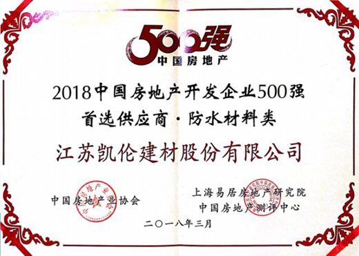 隨著防水市場的不斷發展與規范,行業集中度的不斷提升,凱倫股份在資本市場上迅速崛起,在行業內形成了新的競爭格局。受益于資本推動,凱倫股份更是積極與房地產開發商進行戰略合作,再次成功入選中國房地產500強開發企業首選品牌。