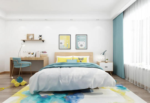 兒童房的改造分男女兩類風格,紅綠藍粉四種顏色,而且量身定制了家具,包括書桌、床、床頭柜,配防撞角和電源安全鎖等。