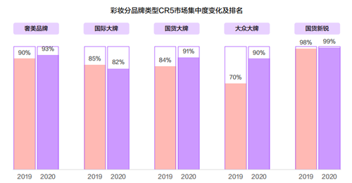 彩妝領域內,國際大牌面臨更多品牌挑戰,大眾大牌和國產大牌處于震蕩調整期。