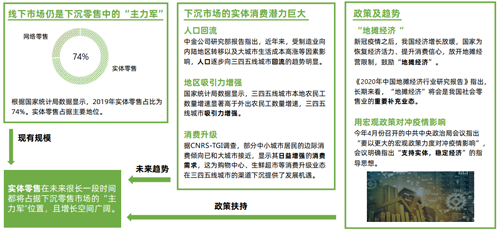下沉市場的線上線下格局分析:線上電商巨頭競爭白熱化,線下的實體消費潛力巨大,需要更下沉的渠道網絡建設。