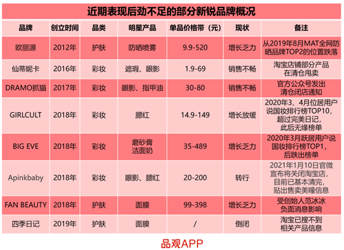 從統計結果來看,后勁不足的彩妝新銳品牌要明顯多于護膚。這點并非偶然。