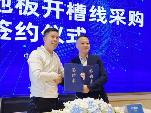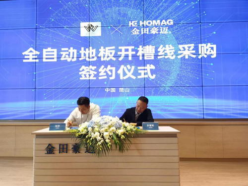 2020年10月23日,山東萬潤高科新材料有限公司(以下簡稱“萬潤高科”)與金田豪邁板開槽線戰略合作簽約儀式圓滿完成。當天上午,萬潤高科董事長劉華先生,金田豪邁地板線項目總經理喬雷陽先生參加了簽約儀式。