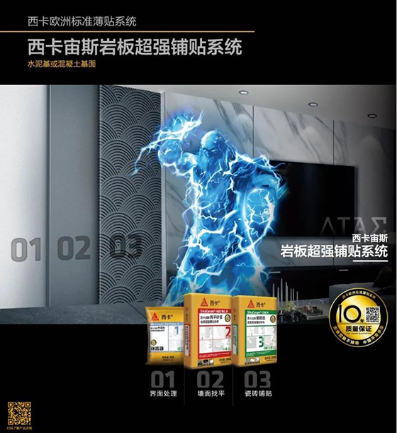 西卡宙斯巖板超強鋪貼系統(tǒng),涵蓋三大塊,界面劑、找平砂漿和瓷磚膠,通過正確的施工手法,可以確保巖板的安全鋪貼。