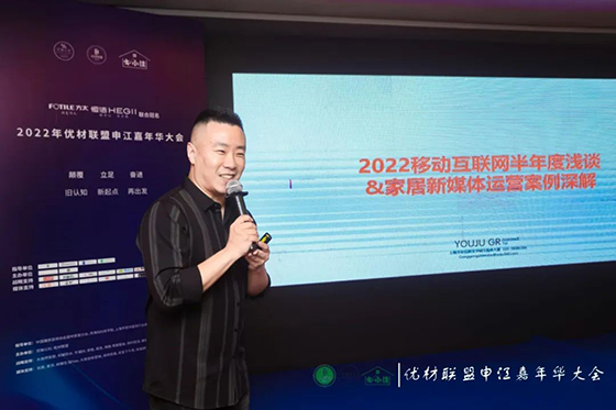 優居品牌事業線總經理麒麟帶來《2022移動互聯網半年度淺談&家居新媒體運營案例深解》,他通過多個家居建材行業的品牌案例,介紹了抖音平臺“1+N+X”構建品牌矩陣的數字化內容營銷新玩法。