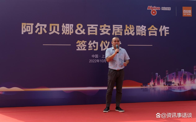 接著,百安居商務采購執行總監&全國零售運營總監陳志國上臺致辭。陳總在致辭時表示,,阿爾貝娜作為德國百年涂料品牌,產品優質,服務一流,百安居作為家裝建材領域領先的平臺企業,雙方有很多可以交流、合作的業務領域,相信這次戰略合作簽約,不僅會為雙方注入新的生機活力、開創新的發展局面。百安居也會以這次戰略合作為契機,與阿爾貝娜品牌在品牌入駐、產品與服務、業務拓展、資源整合及其他擅長且互補的領域開展多種形式的深度合作,實現優勢互補、資源共享、強強聯合、互利共贏,共同推動家裝行業發展,為廣大消費者提供更加優質的產品和服務。