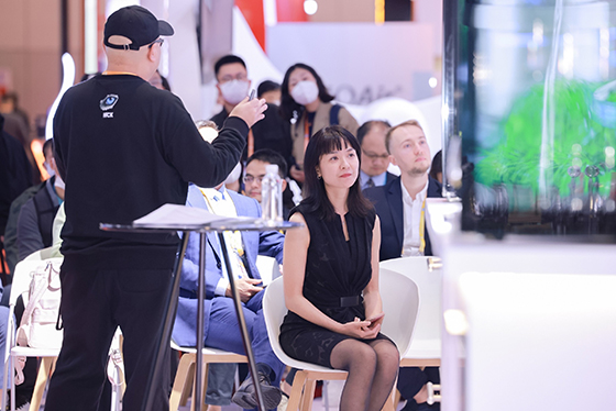 齊老師的講解過后,緊接著由HCK哈士奇首席創意官、來自中國香港的知名創意設計師Biff為來賓們熱情介紹了極具設計風格的高定侘寂風系列和賽博朋克冰吧。