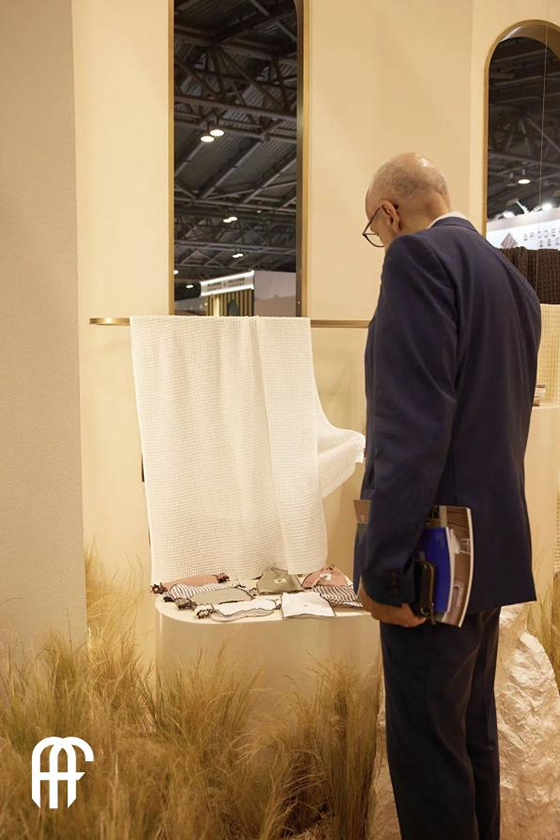 AMAZE FIBER美絡工坊“柔織沙影”設計空間,抽象化的流沙影像,多重感官的沉浸體驗,以沙漠、白石、柔性織物、隨性飛草詮釋自然與極簡概念。靈動視覺元素與靜態交錯,折射出品牌關注可持續面料材質與設計創新理念。