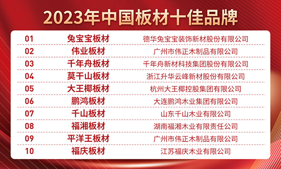 為了給消費者和經銷商遴選出優秀的先鋒板材品牌,本次評選結果由網絡投票、專業考評與消費問卷調查三項綜合評定,經過為期1個多月的激烈品牌爭奪,以下十個品牌最終問鼎年度十佳品牌榜單。以下是本次榜單的入選企業和品牌的詳細排名。