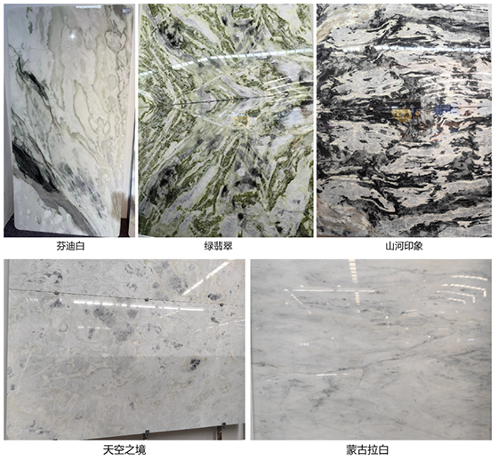趙振卜:此次展會翊磊將為大家呈現(xiàn)的重點產(chǎn)品有:芬迪白、綠翡翠、山河印象、天空之境、蒙古拉白。