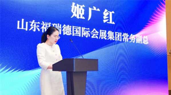山東福瑞德國際會展集團常務副總經(jīng)理姬廣紅在致辭中表示,本次通氣會的召開,既是為了展會成功舉辦吹響沖鋒號,更是為了與參會成員共謀破局之道。她從五個方面分享了本屆展會籌備亮點,一是規(guī)模之“實”,本屆展會以10萬平米展覽面積、917家參展企業(yè)刷新紀錄,展位提前3個月售罄,光地企業(yè)參展面積占比90%,全面覆蓋產(chǎn)業(yè)鏈;二是創(chuàng)新之“銳”,展會聯(lián)合九正科技推出“云展小程序+AI數(shù)字人矩陣”,線上線下融合提升效率;三是服務之“穩(wěn)”,主辦方推出系列服務政策,為參展商邀約客戶提供免費住宿、知識產(chǎn)權(quán)保護等全方位服務,確保參展無憂;四是強調(diào)主辦方與參展商的雙向奔赴、共同造勢,鼓勵通過聯(lián)動宣傳等舉措將展會流量轉(zhuǎn)化為銷量。最后,她預告2026年展會十周年的主題為“拾級而上·鏈啟新篇”,屆時將在展區(qū)規(guī)劃、論壇活動、展覽規(guī)模等方面實現(xiàn)重磅升級。并預祝各位參展商在4月18日的展會上收獲滿滿,滿載而歸。