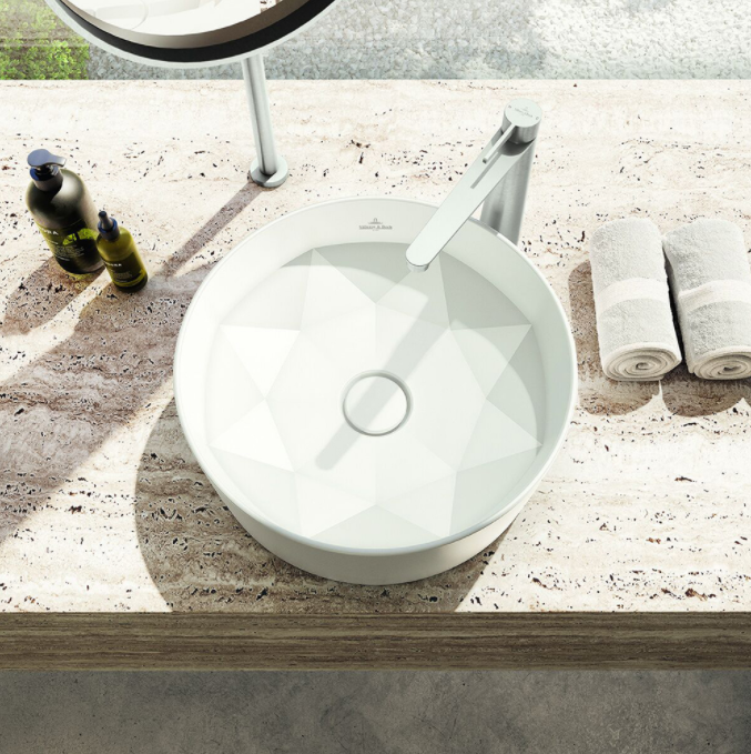 在陶瓷潔具品類,Villeroy & Boch | 德國唯寶承襲277年制瓷工藝,在本屆ISH帶來極具精致匠藝之美的Octagon | 帝王之星新款洗面盆。該系列由歐洲制瓷匠人以強韌TitanCeram | 鈦瓷手工塑造,雕刻出如鉆石切割般的八芒星型內壁。在原有的立柱盆基礎上,該系列現推出更加簡約的臺上盆款型及石白色、雅墨黑兩款配色,締造奢華感與現代感的融合之作。