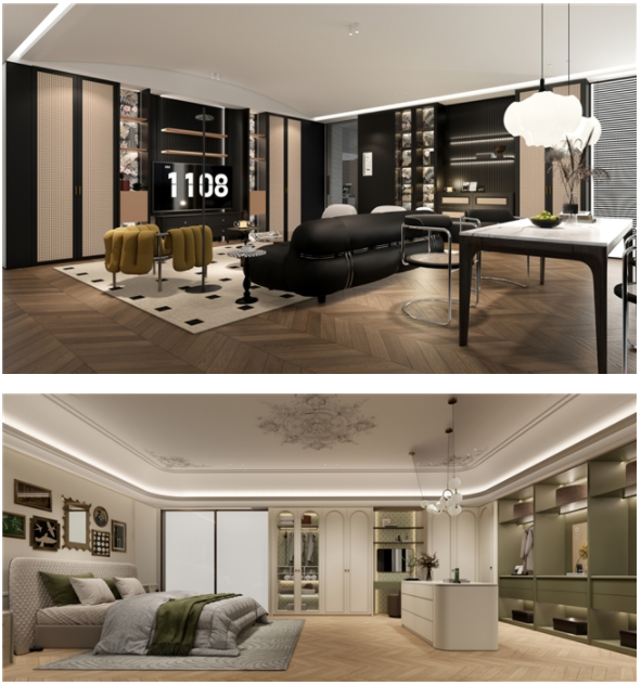 展廳內(nèi)鋪陳十余套沉浸式場(chǎng)景,解構(gòu)“定制”的固有邏輯,打造“一廳一世界”:極簡(jiǎn)主義的克制、中古風(fēng)情的深邃、南洋光影的慵懶、新中式的東方韻律.…實(shí)現(xiàn)功能分區(qū)智能化、交互場(chǎng)景人性化,完善了品質(zhì)家居全案生態(tài)的全新構(gòu)建。