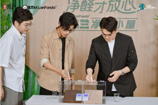 在“世界無醛日”專場直播現場,國寶頂流M.LanPanda萌蘭攜手“竹板推薦團”成員——好萊客全球品牌代言人陳坤、好萊客執行總裁沈竣宇、好萊客竹板推薦官Homie驚喜齊聚好萊客官方直播間,通過凈醛與抗壓實驗花式測竹板,帶領消費者在線見證原態凈醛竹板硬實力。
