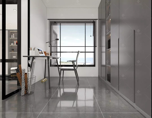 現(xiàn)代簡約的烤漆書柜,以灰色為基調(diào),結(jié)合同色系書桌和窗臺,色調(diào)統(tǒng)一和諧,視覺效果極佳。封閉柜門既可以防塵又讓書房更加整潔有序,寬敞的窗臺引入自然光,打造更明亮的視覺感受,看書辦公產(chǎn)生倦意時,還能遠眸窗外,緩解眼部疲勞。