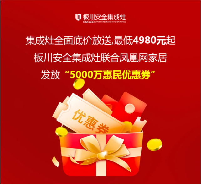 據了解,活動期間板川門店的集成灶產品將全面底價放送,最低4980元起;此外,板川安全集成灶還將聯合鳳凰網家居以“今年過年,咱回家”主題活動為契機,通過短視頻、線下活動、新春促銷等多樣化的新春福利活動,發放“5000萬惠民優惠券”,點燃這個久違的團圓新年。