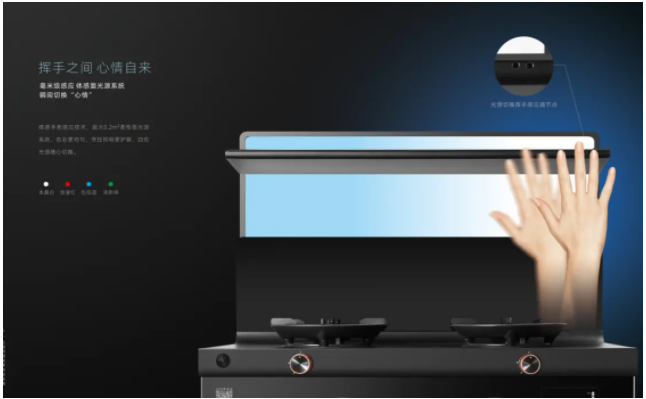 此外,K7集成灶還采用AI數字智煙系統內置煙霧流量感應模組,紅外線雙鏡頭實時監測烹飪煙霧大小,自動調節吸煙功率,讓煙機不再是噪音,會像音樂一般有起伏的律動感。在安全方面,K7集成灶的感應探頭可以在待機狀態下自動檢測燃氣泄漏,并發出警報,同時開啟漏氣強排,為廚房安全保駕護航。