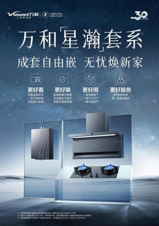今日,廚衛頭部品牌萬和電氣以核心用戶消費體驗為導向,旨在為眾多新裝,換裝的用戶提供優質,優美的萬和30年紀念款星瀚套系正式上市。