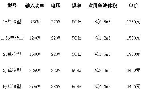 廣州盛威制冷設(shè)備商行魚池機(jī)基本參數(shù)及價格表