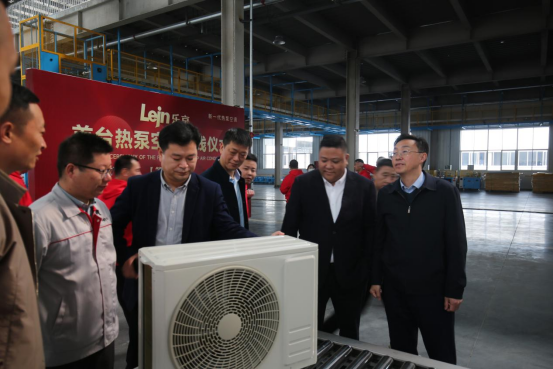 緊接著,來到了激動人心的時刻——各位領導共同為樂京安慶基地首臺熱泵空調揭幕,掀開樂京歷史發展的新篇章。現場鑼鼓喧天,鞭炮齊鳴,一片喜氣洋洋的歡慶氣氛。最后,眾人在掌聲和歡呼中合影留戀。