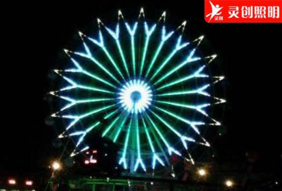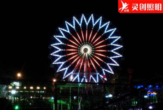靈創照明以專業的戶外亮化設計,賦予摩天輪一種獨特的美,讓摩天輪成為城市中耀眼的存在。