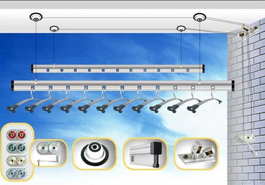 晾桿:通常是配兩條晾桿,材料以鋁管為主,因為鋁 表面可做多種表面處理(陽極氧化、噴砂、霧銀),使其顯得漂亮并有裝飾作用。