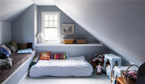 相對于平屋頂的房間,斜屋頂間的裝修更要動些腦筋,尤其在家具的選擇上。為了充分利用斜屋頂下的空間,家具方面,斜屋頂閣樓常常需要進行特別訂制。在空間利用方面,尤其是在斜屋頂下的空位,可設計成推拉式儲物柜。