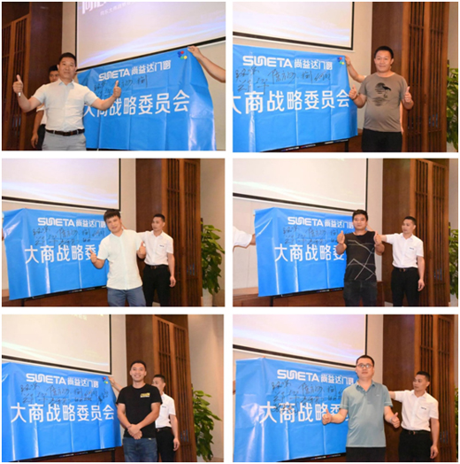 2019年8月1日—2日,“同心 同德 齊飛躍——尚益達門窗2019大商精英論壇暨大商戰略委員成立大會”成功舉辦。尚益達門窗董事長陳方河、總經理王釗、營銷總監尹顯青、生產廠長馮承浪、研發總監蔡日氽、市場總監白永攀,與來自全國各地的經銷商優秀代表共聚一堂,共商發展戰略,贏戰輝煌未來!