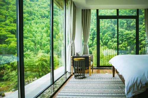 晨曦的動力與夕陽的浪漫一覽無遺,咫尺之間就在眼前,綠樹成蔭,野花飄香,透過玻璃窗仿似伸手就能觸摸自然。