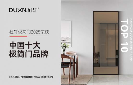 在競爭激烈的門業(yè)市場中,杜軒極簡門憑借卓越的品質與創(chuàng)新的設計,成功脫穎而出,榮獲 2025 年“中國十大極簡門品牌”的殊榮。這一成就不僅是對杜軒品牌的高度認可,更是其多年來深耕極簡門領域,不斷追求卓越的有力見證。