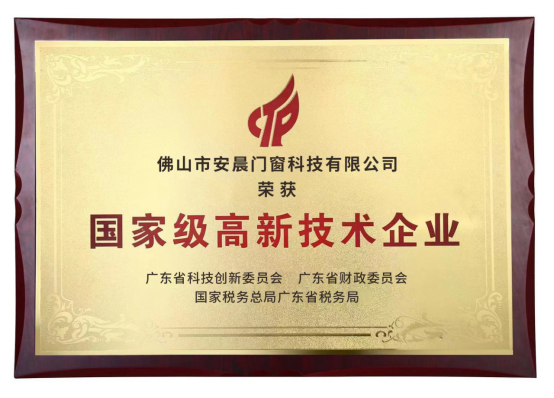 此次通過高新技術企業認定,既是國家對安晨創新研發實力、技術研發水平及高新技術企業發展成果的充分肯定,也是對安晨研發設計體系的全面檢驗。未來,安晨將繼續以“科技、綠色、環保”為己任,不斷加大研發和創新投入,通過對“無縫焊接”技術的探索和完善,為用戶打造“品位、時尚、有情調”的生活體驗,助力中國門窗產業發展!