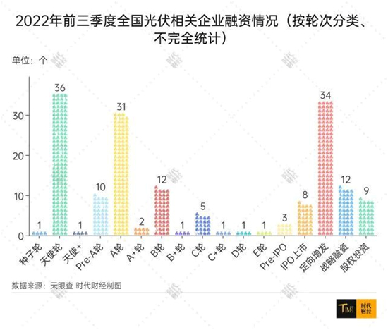 據(jù)時代財經(jīng)不完全統(tǒng)計,2022年前三季度共有160家與光伏相關(guān)的企業(yè)進行了168次融資,多家光伏企業(yè)融資兩次。