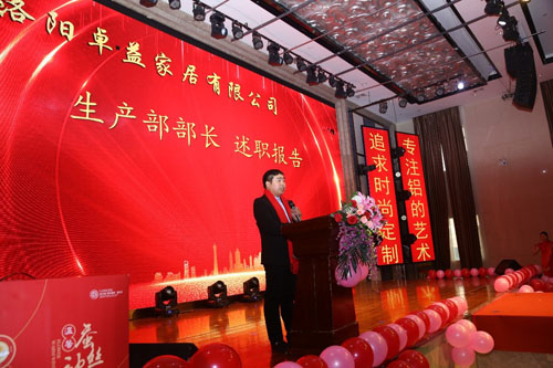 在谷董事長的精彩致辭后,卓益家居各部門部長繼續(xù)上臺做年終總結(jié)報告。場下家人們聚精會神,將目光聚焦于臺上。