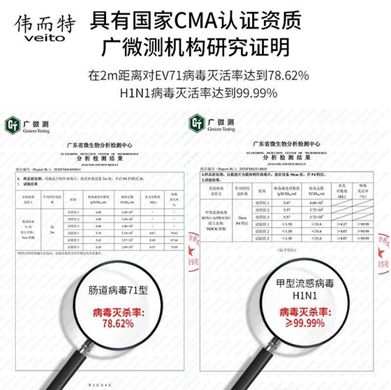 黑科技二:室溫下偉而特能滅殺2米遠的病毒。