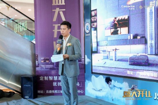 是日,人聲鼎沸,鑼鼓喧天,處處充滿著欣欣向榮的景象,開業慶典,盛世起航。嘉賓陸續到場簽到后,由海爾智能總經理褚總、三翼鳥生態品牌李紹恩、吉盛偉邦徐晉烈、客戶老板張應成、省家居業聯合協會代表分別做開業致辭。