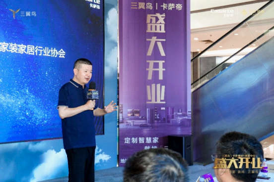 精彩發言引起掌聲連連,現場干貨滿滿,隨后由深圳家裝家居行業協會會長李曉鋒做“生態融合·無界共贏”的主題分享。他提及到,三翼鳥|卡薩帝001號合生雅居體驗中心落地無疑是一次創新之舉,有利于將更便捷、更舒適的智慧家庭場景普及到千家萬戶。