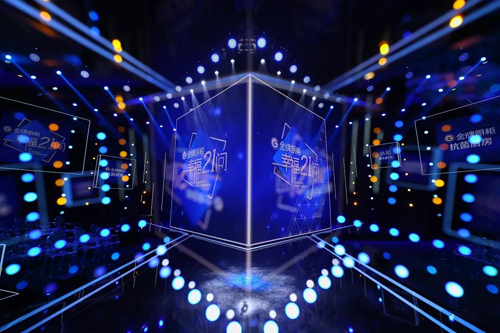 這檔節目采用全新舞臺設計,采用深藍色作為舞臺大面積的基底色,用燈光勾勒出的房屋的輪廓 ,全新的舞美打造出富有科技感的場景。除了舞臺的變化,節目還加入由金牌廚柜全力打造的明星觀察屋,融入旗下各品類產品,利用智小金智能機器人引導藝人完成節目活動,觸發不一樣的節目效果。