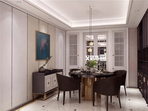 餐廳摒除傳統(tǒng)中式家具的繁鎖沉悶,以極簡主義設計風格抒寫空間的簡雅詩意。線條簡單流暢,設計感凸顯,搭配餐椅讓整個空間色彩柔和,和諧,具有高度的賞心悅目視覺效果。