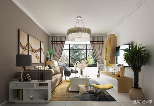 主色調(diào)高級(jí)灰和白色的對(duì)稱配合,再加以亮黃色的點(diǎn)綴,疏散了沉悶感,大飄窗設(shè)計(jì);整體空間通透而敞亮。電視背景墻格子組合的敞開(kāi)柜子設(shè)計(jì),錯(cuò)落有致;搭配流感十足的藝術(shù)裝飾畫,豐富了空間層次。無(wú)論是沙發(fā)旁的長(zhǎng)形柜體還是原木色的電視柜,干凈簡(jiǎn)潔的線條質(zhì)感,顯得非常簡(jiǎn)約而干練,又在一定程度上滿足了收納功能,美觀實(shí)用。